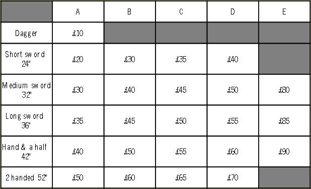 When ordering scabbards please include dimensions of sword blades Prices are based on the total length of the sword - NOT the blade length. Also, please specify right