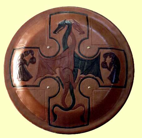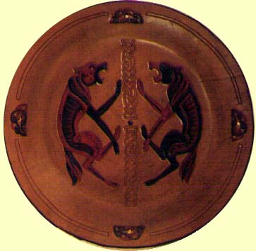 These two hand-carved shields were purely decorative wall hanging type pieces